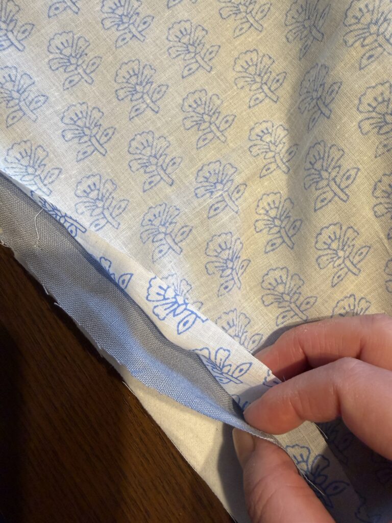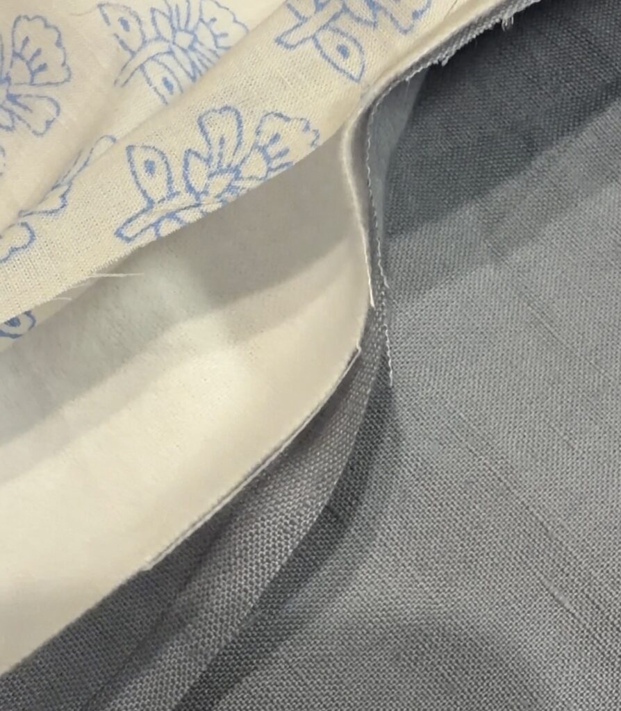 せっかくなら、ただの練習ではなく、何か形になるものを縫ってみたいなと思い、以前から家にあったフランネル生地とリネンのハギレ、そしてブロックプリント生地を挟んで