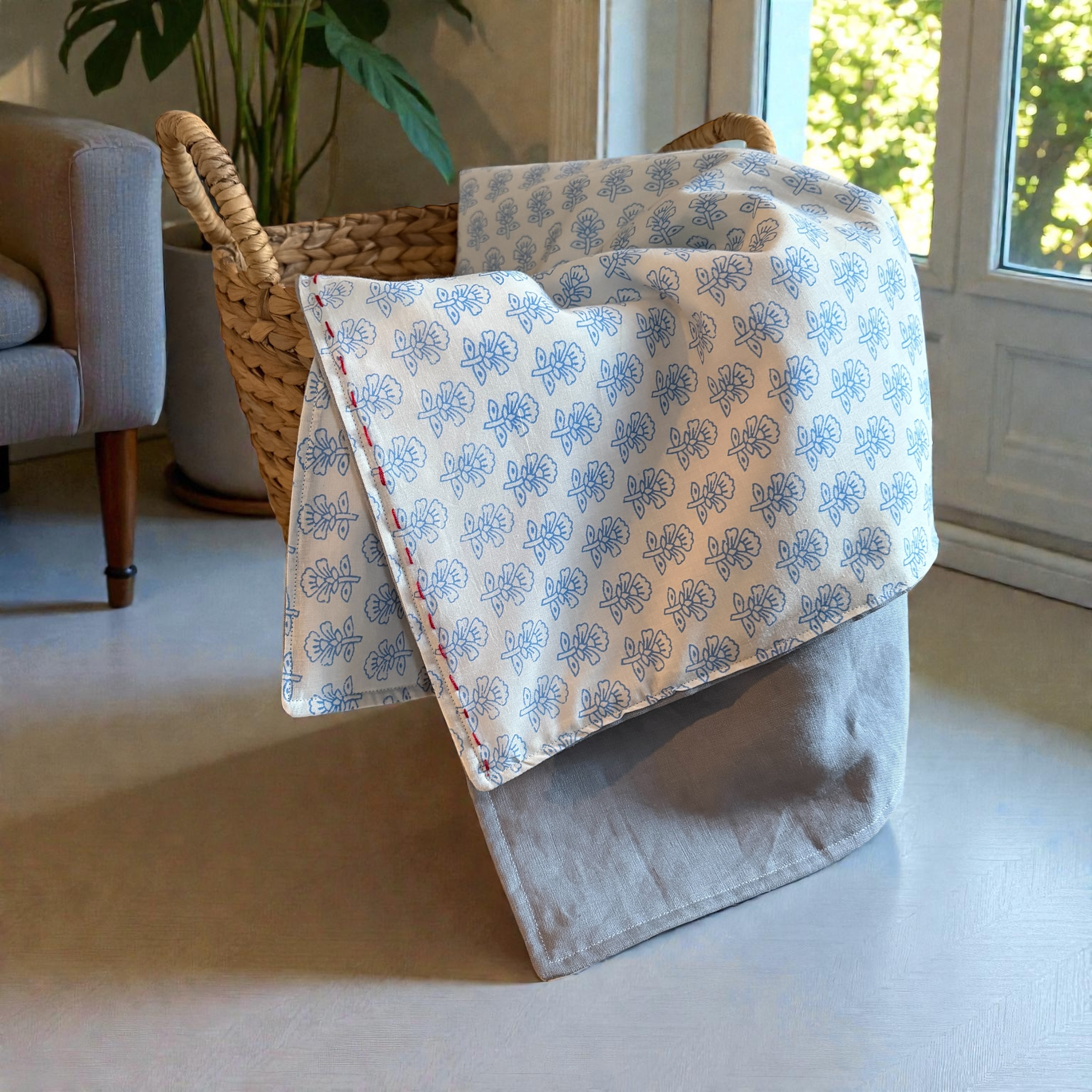 フランネル生地→リネン(表面)→ブロックプリント(裏面)